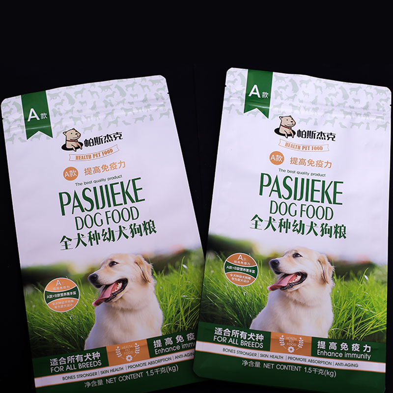 宠物食品包装的形式各种各样,用于不同规格的宠物食品的包装。宠物食品包装袋质量直接影响着宠物食品质量。宠物食品包装袋是根据所包宠物食品的性状来决定袋型和包装袋所用材质!宠物鲜湿粮包装一般采用的是可以121度高温灭菌的包装材质!宠物膨化产品零食类的,一般采用的是常温包装!包装袋的彩印图案和包装袋的袋型我公司可以根据客户要求免费设计!