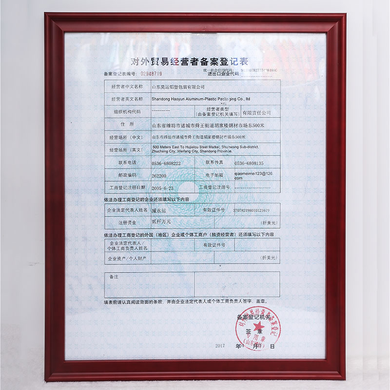 对外贸易经营者备案登记表